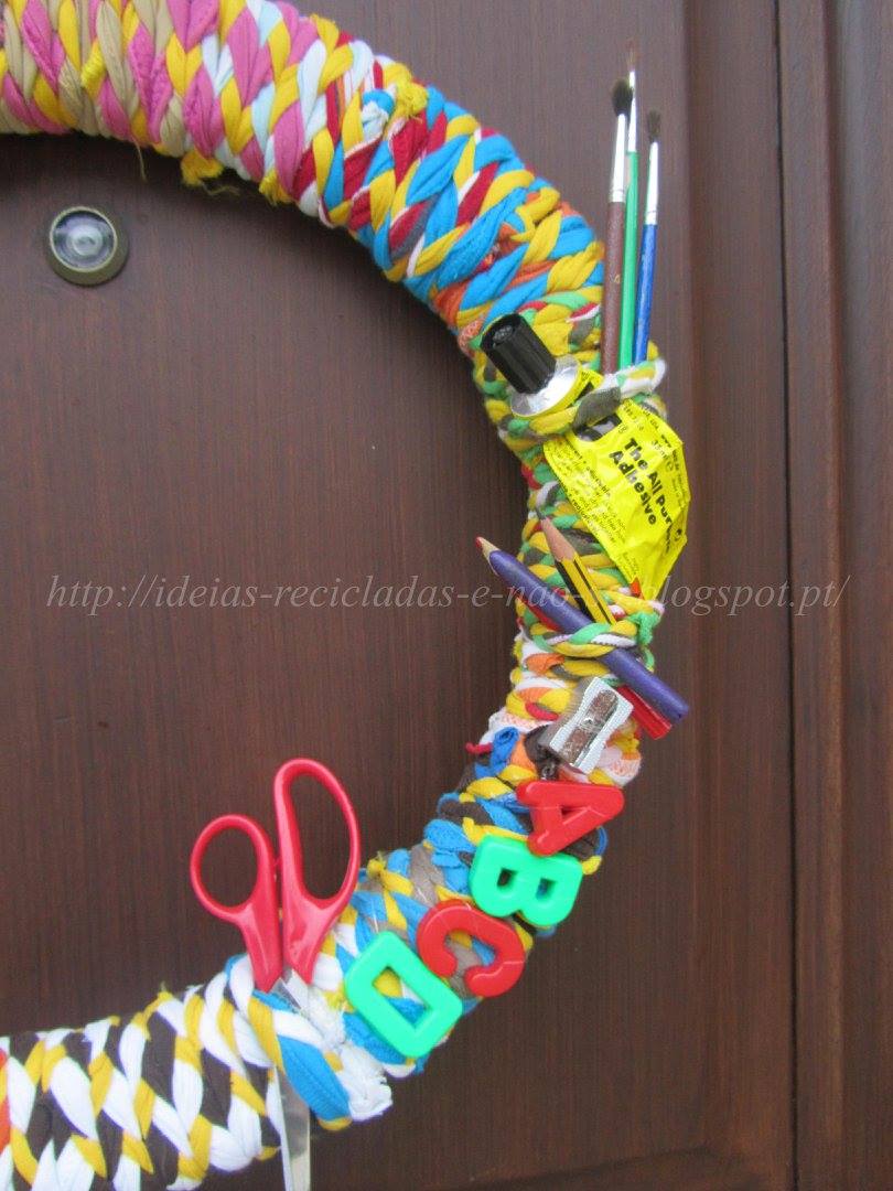 Regresso às Aulas* Base. É feita com um pedaço de mangueira. Enrolei e prendi a mangueira até ter a dimensão que desejava.