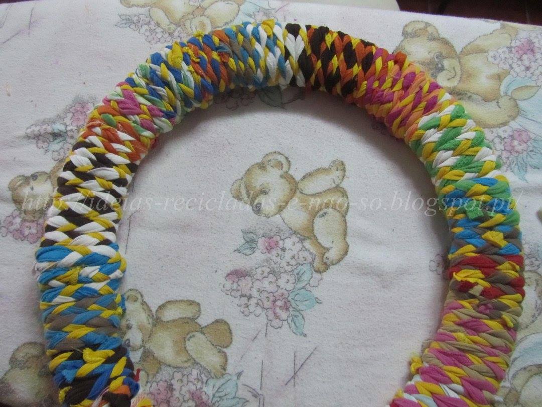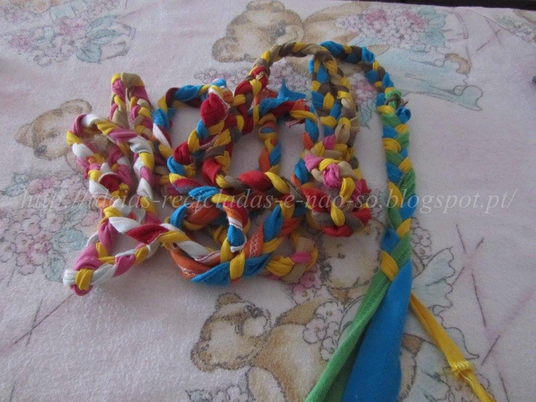 * Para forrar a base, recorri a restos de trapilho e fiz uma trança.