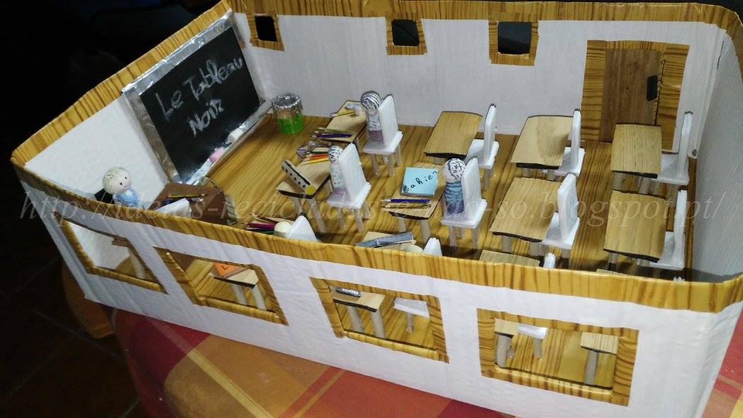 De realçar que a quase totalidade dos materiais é reciclagem. A exceção verificou-se na pasta de moldar, no plástico autocolante e nos palitos.